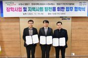 태산뉴스 이동욱 기자 | 수원특례시 영통구는 지난 18일, 한국지역난방공사 수원지사, 구 주민자치협의회와 상호 협력을 바탕으로 지역 미래인재 육성을 위한 장학사업 협약을 체결했다. 이번 협약은 지역 내 학업 의지가 높으며 경제적 지원이 필요한 학생들을 지원하고, 주민과 기관이 함께 성장하는 지역 공동체의 기반을 마련하기 위해 추진됐다. 한편 한국지역난방공사는 내년도 장학사업이 보다 내실 있게 추진될 수 있도록 협약 체결과 함께 장학금 500만 원을 기탁했다. 해당 장학금은 사회복지공동모금회를 통해 관내 학생 가운데 도움이 필요한 대상자를 절차에 따라 선정한 뒤 전달될 예정이다. 한국지역난방공사 김진만 수원지사장은 “지역과 상생하는 공기업으로서 사회적 책임을 꾸준히 실천하고자 한다”며 “이번 장학금이 학생들의 학업과 미래 설계에 작은 힘이 되기를 바란다”고 말했다. 또한 장대현 구 주민자치협의회 회장은 “주민이 중심이 되어 지역 인재를 응원하고 지역 빌전에 기여할 수 있어 뜻깊다”며 “앞으로도 책임감을 가지고 장학사업 및 다양한 협력 사업을 성실히 수행하겠다”고 전했다. 장수석 영통구청장