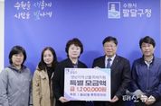 태산뉴스 이동욱 기자 | 수원시 팔달구 화서2동에 위치한 시립서호어린이집은 다가오는 추운 겨울을 앞두고 관내 도움이 필요한 어려운 이웃들에게 따뜻한 마음을 전하기 위해 지난 5일 화서2동 행정복지센터에 성금을 전달했다. 이날 전달된 성금은 원아들이 직접 참여한 ‘사랑나눔 바자회’에서 모금한 것으로 교직원과 학무모들이 함께 참여하여 마련됐다. 시립서호어린이집은 장애아동의 발달 특성과 개별성을 존중하며 함께 어울림을 실천하는 포용보육을 운영하는 기관으로 매년 이웃돕기 기부활동에도 앞장서고 있다. 이번 바자회 또한 원아들의 속도에 맞추어 직접 참여하는데 의의를 두었다. 집에서 가져온 장난감, 도서, 생활용품, 의류 등을 정리하고 가격을 정해보는 활동에 참여했으며, 학부모들도 정성껏 판매 물품을 준비하고 행사 진행을 함께 도왔다. 아이들과 학부모들이 적극적으로 참여하며 즐거움 속에서 나눔의 가치를 배우는 시간을 가졌다. 특히 구미아 원장의 재능기부로 손수 만든 손뜨개작품도 함께 판매하여 수익금을 기부했다. 시립서호어린이집 구미아 원장은 “날씨가 점점 추워지면서 어려움을 겪는 주변 이웃들에게 조금이나마 도움이 되고 싶어