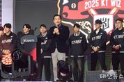태산뉴스 이동욱 기자 | 이재준 수원특례시장이 29일 ‘2025 kt 위즈 팬페스티벌’에서 “팬 한분 한분의 열렬한 응원을 발판 삼아 내년 시즌에도 ‘마법 같은 경기’ 펼치길 응원한다”며 “앞으로도 변함없는 응원과 우렁찬 함성으로 kt위즈와 함께 해주시길 바란다”고 말했다. 수원컨벤션센터 전시홀에서 열린 이날 행사에는 kt 위즈 야구팬(시즌권 회원 등), kt 위즈 1·2군 선수 등 5000여 명이 참석했다. 행사는 팬 사인회, 야구 꿈나무 대상 체험 레슨, 팬과 선수가 함께하는 듀엣 가요제 등으로 진행됐다.