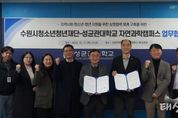 태산뉴스 이동욱 기자 | 수원시청소년청년재단은 11일 성균관대학교 자연과학캠퍼스와 청소년ㆍ청년의 취‧창업 지원과 전인적 성장을 위한 업무협약(MOU)을 체결했다고 밝혔다. 이번 협약을 통해 양 기관은 △대학생 연계사업 활성화를 위한 지속적인 교류활동 추진 및 내실화 △청소년의 진로 탐색을 위한 멘토링 및 학과 탐방 기회 제공 △기타 상호 협력이 필요하다고 인정되는 분야에서의 협조 체계를 구축할 예정이다. 재단 관계자는 "이번 협약이 단순한 형식적 절차에 머무르지 않고 우리 청소년‧청년들에게 새로운 경험과 지속적인 성장의 기회를 제공하는 중요한 출발점이 되기를 희망한다"며, "협약의 성공적인 이행을 위해 상호 긴밀하게 협력해 나갈 것"이라고 밝혔다.