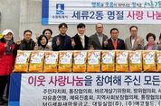 태산뉴스 이동욱 기자 | 지난 11일, 수원시 권선구 세류2동은 설 명절을 맞이하여 사랑 나눔 전달식을 개최했다. 이날 마련된 후원 물품은 취약계층 약 379 가구에 직접 전달될 예정으로 지역사회에 사랑이 전해지는 명절이 될 것으로 기대된다. 이번 전달식에는 세류2동 주민자치회, 통장협의회, 새마을부녀회, 새마을문고, 바르게살기위원회, 자유총연맹, 체육진흥회, 방위협의회, 지역사회보장협의체 등 9개 단체의 단체장과 ㈜대일실업, ㈜광신이 참여했다. 이와 함께 MG세화새마을금고, ㈜에코월드, 영광광고기획 등 지역 내 여러 기관과 개인 후원자의 사랑 나눔도 더해져 행사에 의미를 더했다. 변영호 세류2동장은 “어려운 시기에 지역사회 관심으로 사랑 나눔에 참여해 주신 단체(기관)에 감사드리며, 앞으로도 유관 기관과 적극 협력으로 행복과 웃음이 피어나는 정겨운 세류2동을 만들기 위해 최선을 다하겠다”라고 말했다.