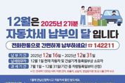 태산뉴스 이동욱 기자 | 평택시는 2025년 12월 정기분 자동차세 16만 5천 건에 대해 199억 원을 부과·고지하고 납부 기한 내 납부하도록 적극적인 홍보에 나섰다고 밝혔다. 자동차세는 연 2회(6월, 12월) 부과하는 정기분 세목으로, 이번 제2기분 자동차세 부과 대상은 과세기준일인 12월 1일 현재 평택시에 등록되어있는 자동차, 이륜차, 건설기계 등이며, 7월 1일부터 12월 31일까지의 보유기간에 대해 차량의 용도와 차종, 배기량, 차령에 따라 세액을 차등 적용하여 부과한다. 아울러, 연세액 10만 원 이하의 경차·화물차·승합차량은 6월에 전액 과세하나 6월 이후에 취득했다면 이번 제2기분 과세 대상에 포함되며, 자동차세를 연납한 차량은 이번 과세 대상에서 제외된다. 납부 기한은 12월 16일부터 31일까지이고, 고지서는 우편 발송되며 전자고지 신청자는 전자우편 또는 모바일 앱에서 확인이 가능하다. 납부는 ‘지방세입계좌’ 서비스를 통해 이체 수수료 없이 납부할 수 있으며, 이외에도 전국 금융기관 방문 혹은 은행 자동화기기(CD/ATM) 등에서도 고지서 없이 신용카드 또는 통장으로 납부할 수
