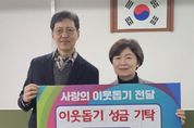 태산뉴스 이동욱 기자 | 경토리민요연구소의 박정은 대표는 지난 24일, 팽성읍 행정복지센터를 방문해 저소득 가구 지원을 위한 성금 30만 원을 전달했다. 이날 전달식에서 박정은 대표는 “어머니가 어릴 적부터 어려운 이웃과 함께하는 삶을 보여주셨고 지역을 위해 베풀며 살아야 한다는 가르침을 늘 강조하셔서, 저 역시 그 마음을 실천하고 싶었다. 작은 정성이지만 따뜻한 나눔으로 전해지길 바란다”라고 전했다. 박정은 대표의 어머니 또한 팽성읍에서 다양한 봉사 활동과 지역사회 참여를 꾸준히 이어오며, 지역 발전과 이웃사랑 실천에 큰 기여를 해온것으로 알려졌다. 이근영 팽성읍장은 “박정은 대표님의 따뜻한 나눔에 깊이 감사드린다. 기부금은 팽성읍의 어려운 이웃들에게 큰 힘이 될 것”이라며 “박 대표님과 어머니처럼 지역을 위해 헌신하는 분들이 계시기에 팽성읍이 더욱 따뜻하고 건강한 공동체로 성장해 나가고 있다. 전달된 성금이 의미 있게 사용될 수 있도록 최선을 다하겠다”라고 말했다.