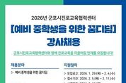 태산뉴스 이동욱 기자 | (재)군포시청소년재단 군포시진로교육협력센터는 관내 예비중학생의 학교 적응과 진로 기초 역량 강화를 위해 '2026년 군포시진로교육협력센터 예비중학생을 위한 꿈디딤' 프로그램에 참여할 강사를 채용한다고 밝혔다. 이번 강사 채용은 초등학교에서 중학교로의 학년 전환기를 앞둔 예비중학생을 대상으로, 중학교 생활 전반에 대한 이해를 높이고 진로 탐색과 자기 이해를 돕는 맞춤형 프로그램을 운영하기 위한 것으로, 총 3명 내외의 전문 강사를 선발할 예정이다. 채용 공고는 2026년 1월 29일부터 2월 4일까지 진행되며, 지원서 접수는 2월 5일부터 2월 11일까지이다. 접수는 이메일을 통해서만 가능하다. 선발된 강사는 예비중학생을 대상으로 중학교 생활 적응, 학습 및 진로 정보 제공, 학습 동기 강화 등을 주제로 한 ‘꿈디딤’ 프로그램을 운영하게 된다. 군포시진로교육협력센터 이혜진 센터장은 “예비중학생 시기는 중학교 생활에 대한 불안과 기대가 공존하는 시기”라며 “아이들이 새로운 환경에 안정적으로 적응하고, 스스로의 진로를 탐색할 수 있도록 돕는 프로그램이 될 수 있도록 전문 강사들의