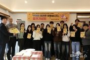 태산뉴스 김준수 기자 | 의왕시청소년재단 산하 의왕시청소년수련관에서 운영하는 청소년기자단 ‘헤르메스’가 12월 21일, 한 해 동안 작성한 기사를 담은 도서 '우리의 의견은 이렇습니다'의 출판 기념 행사를 성황리에 마무리했다. 관내 한 카페에서 진행된 이번 출판 기념회는 한 해 동안 기자단이 취재하고 집필한 기사들을 한 권의 책으로 엮어 출판한 것을 축하하며, 청소년기자단의 성장을 격려하는 자리로 마련됐다. 행사는 의왕시청소년재단 전영남 대표이사의 축사를 시작으로, ▲기자단 연간 활동 발표 ▲출판본 수여식 ▲케이크 컷팅식 ▲기자단 소감 발표 ▲기념 촬영 순으로 진행됐다. 현장에는 청소년기자단의 담당 지도자와 의왕시청소년재단 산하 기관 기관장 등이 참석해 청소년들의 노력과 성과를 축하했다. 청소년기자단 ‘헤르메스’는 올해 지역의 다양한 이슈와 청소년의 시각을 담은 기사를 기획·취재하며, ‘청소년이 지역사회의 주체로서 참여할 수 있다’는 메시지를 전했다. 이번 출판 도서는 이러한 활동의 결실로, 지역 내 학교와 공공기관 등에 배포돼 더 많은 청소년과 지역주민이 함께 읽고 공감할 수 있도록 할 예정이다.