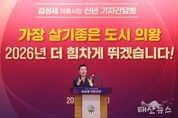 태산뉴스 이동욱 기자 | 김성제 의왕시장이 5일 시청 대회의실에서 2026년 신년 기자간담회를 열고 민선8기 의왕시 주요성과와 2026년 시정 운영방향에 대해 설명하는 시간을 가졌다. 김 시장은 “지난 3년 반은 의왕시의 새로운 미래를 준비하며 역동적으로 도약해 온 시간이었다”며, “대규모 도시개발과 복선전철 사업을 비롯해 교육과 복지, 문화‧예술, 일자리, 안전에 이르기까지 도시 전반에 걸쳐 혁신적인 변화를 만들어 왔다”고 평가했다. 특히, 오랫동안 해결되지 못했던 숙원사업들이 해결된 것을 의왕시의 주요 성과로 설명하며, 대표적인 사례로 의왕 문화예술회관 착공, 인덕원~동탄 및 월곶~판교 복선전철 착공, 내손중고통합학교 개교, 의왕 종합병원 유치 등을 꼽았다. 또한, 초평지구와 청계2지구 내 기업·투자 유치, 부곡커뮤니티센터 착공, 의왕역~판교 간 프리미엄버스 및 초평동 똑버스 신설, 의일로2 개통 등 도로망 확충, 22개 맨발걷기길 조성, 백운호수 생태탐방로 및 백운호수공원 개장, 의왕야구장 및 금천천 파크골프장 개장, 글로벌인재센터 부곡분원 개소, 노인 버스 무료승차 지원사업 추진, 장애인 힐링쉼터 개소